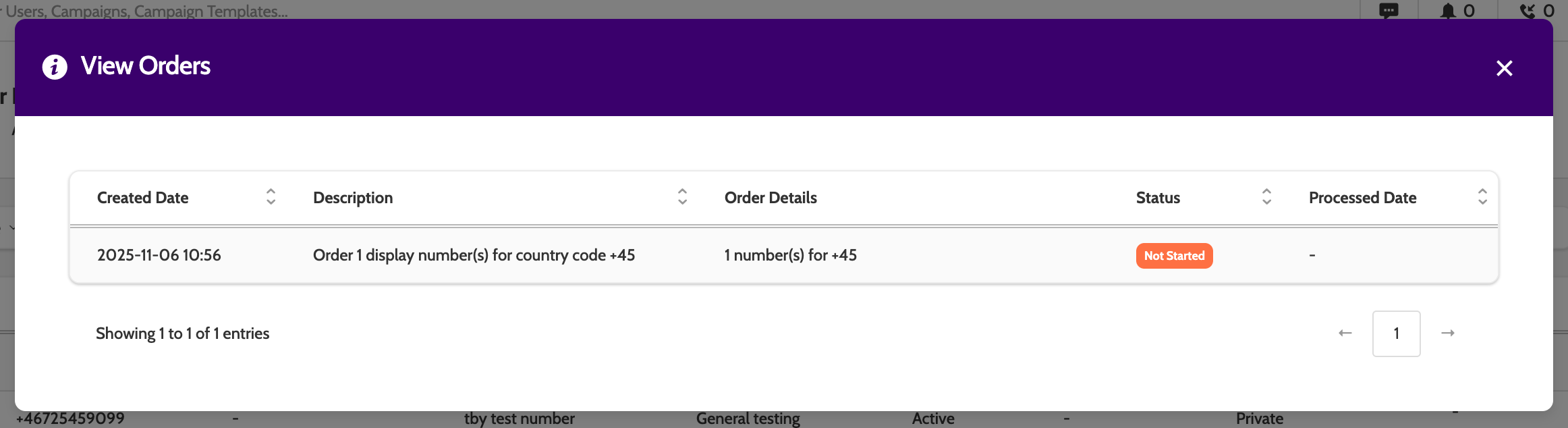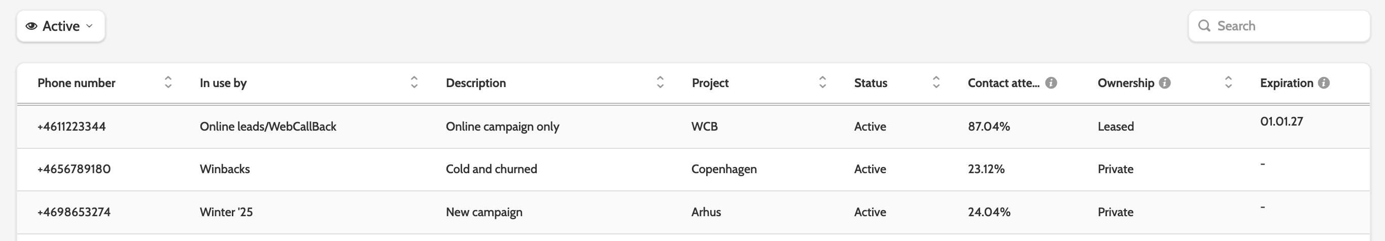 - Whether the number is active or inactive