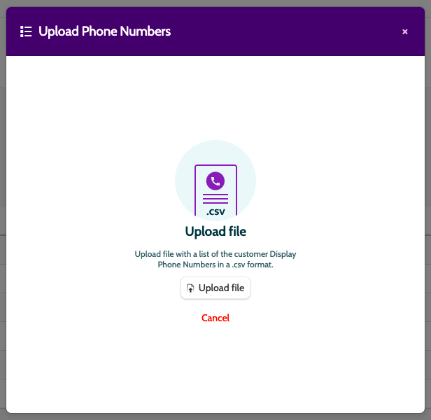 To upload several phone numbers at once, you can upload a CSV file containing all the data.