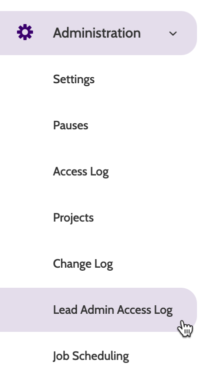 Lead Admin Access Log can be found under the Administration menu.