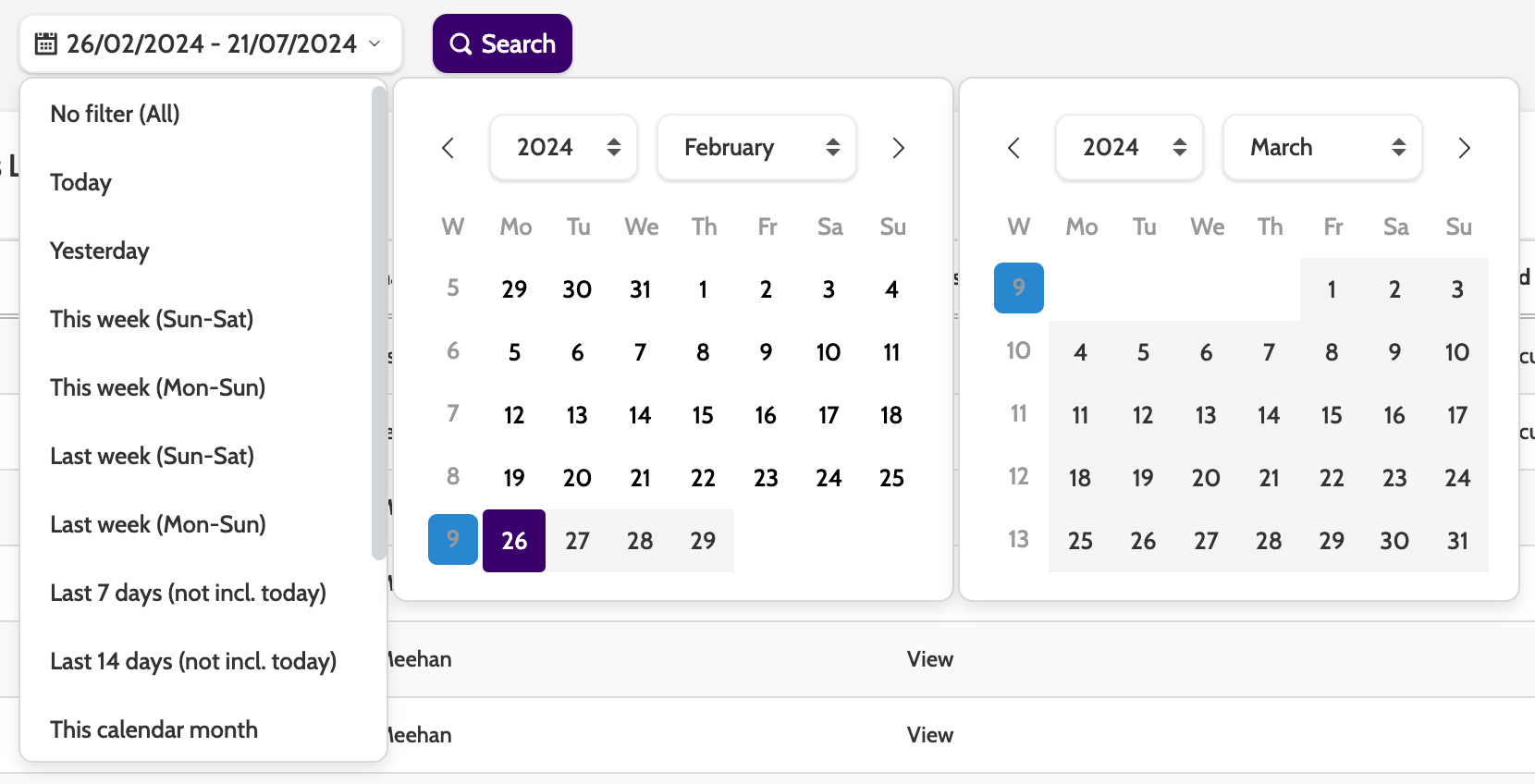 Finally, select the time period you want to view the change log for.