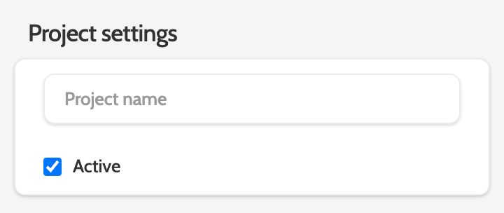 Under Project settings, add a name, and check the active box to mark it as Active.