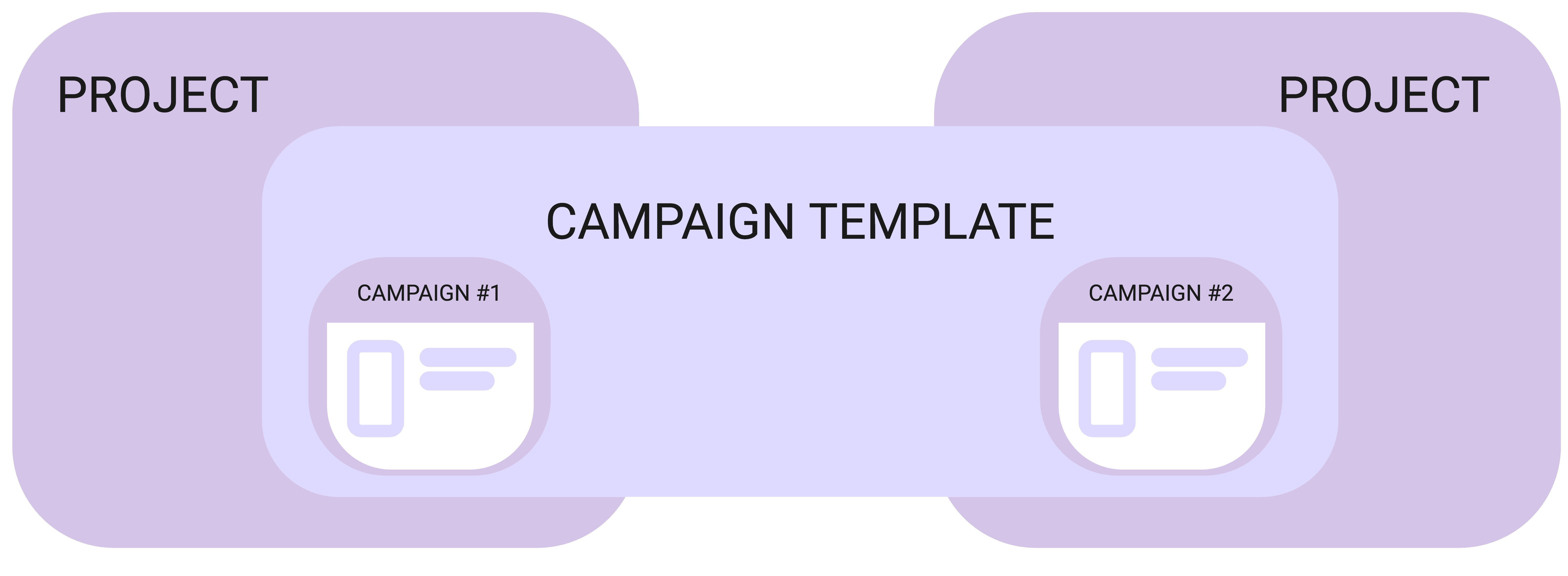 As you can see in the image below, when campaigns are created they will belong to a project, but different campaigns can be based on the same campaign template.