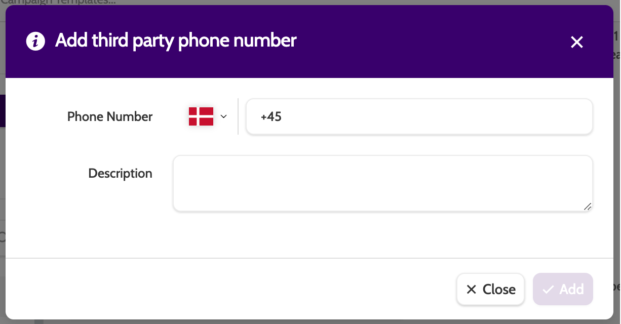 Enter the phone number, and add a description that will be used internally.