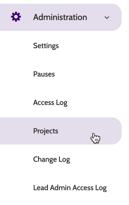Projects can be found under the Administration menu.