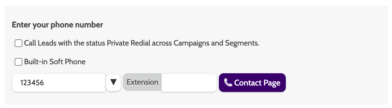 - Private Redials will display leads that have been set to be contacted as Private Redial, connecting a specific agent to a lead at a chosen time