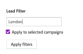 For example, to search for leads that have London anywhere in their Lead Data, type London in the Lead Filter search box, and click Apply filters.