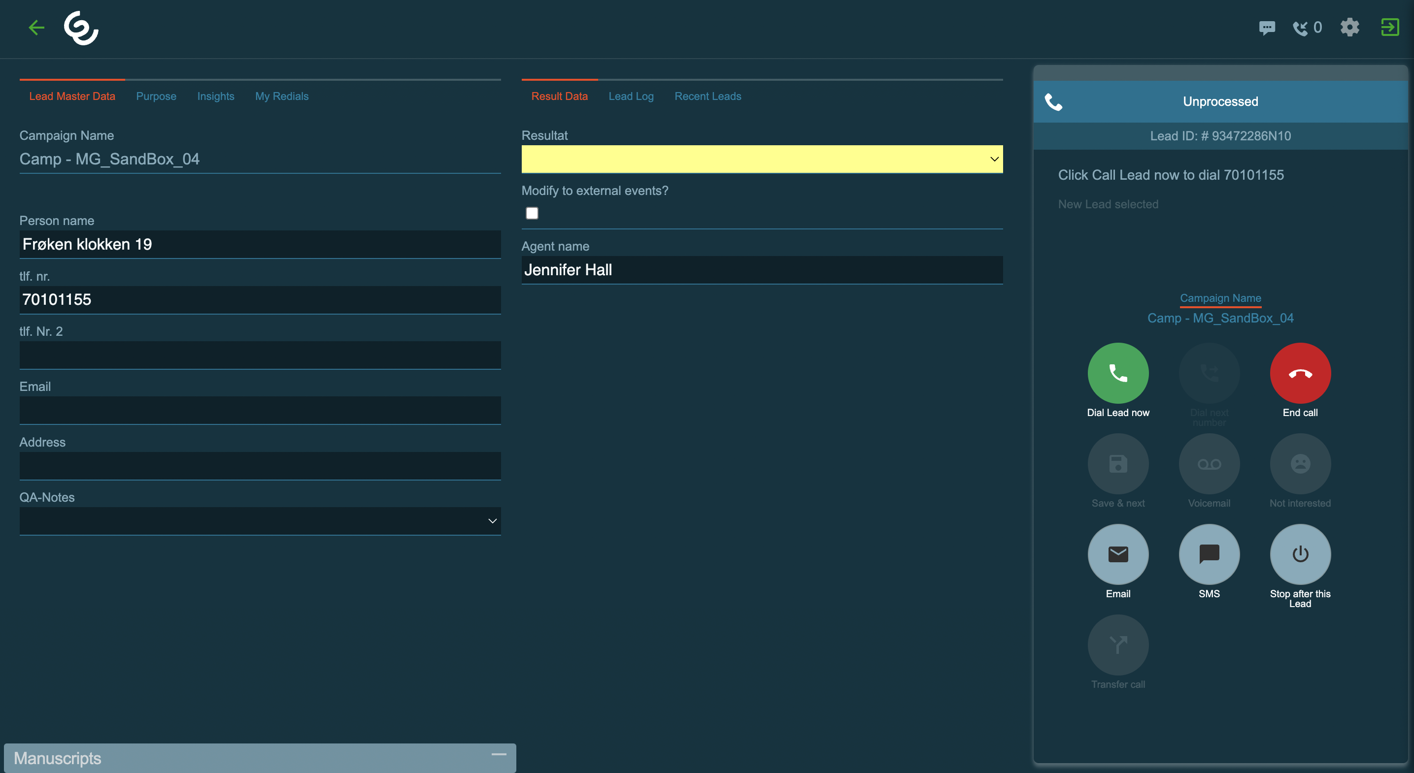 If the campaign has a manuscript for you to follow when calling a leads, you will find this in the bottom of the screen.