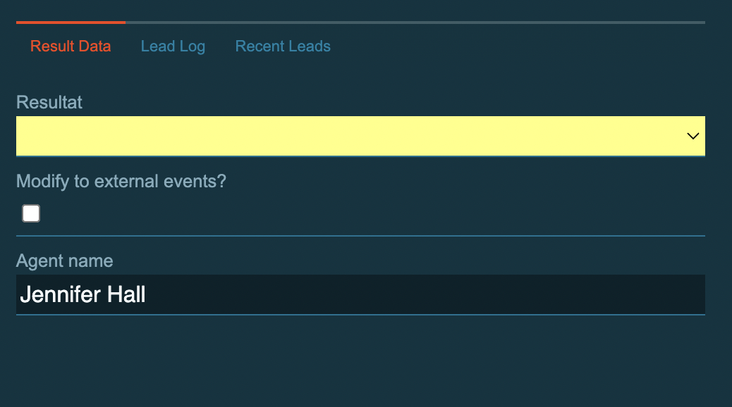 In the middle of the page you will see result data. This is where you will enter the results of the calls to your leads.