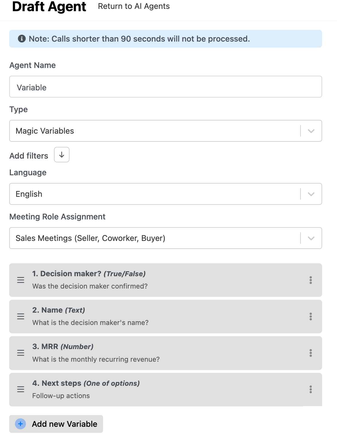 - Under Meeting Role Assignment, choose the category of conversation your AI Agent will analyse