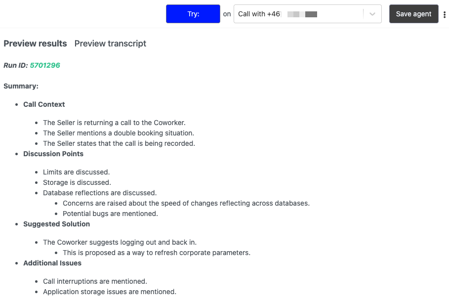 - Support Call - Each template will come with a pre-filled description of what the AI Agent should analyse. Refine the focus by adding your objective in the final box, Describe what you want to find.