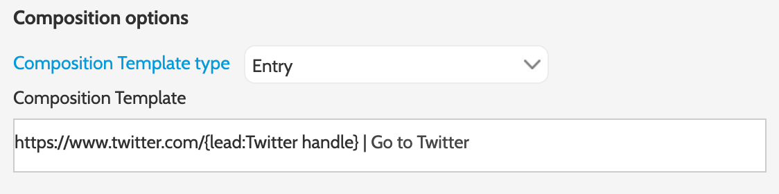 Next, in the entry data field, enter the URL for Twitter in the Composition Template field - don't forget the forward slash that will precede your lead's Twitter handle.