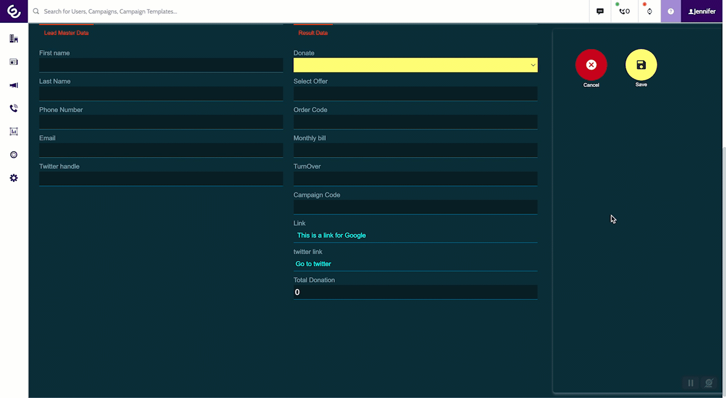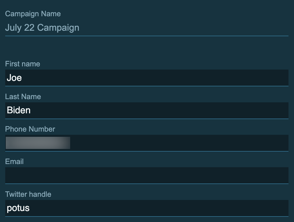 So, when we create a lead in a campaign using this campaign template, and add data into the 'Twitter handle' data field, it will automatically fill into the entry data field we have created.