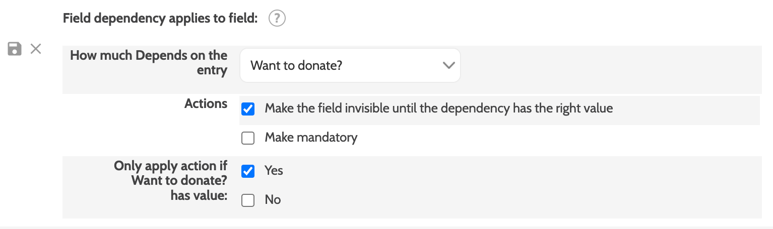 Click the Save icon to save your field dependency, and click Save at the bottom of the screen when done.