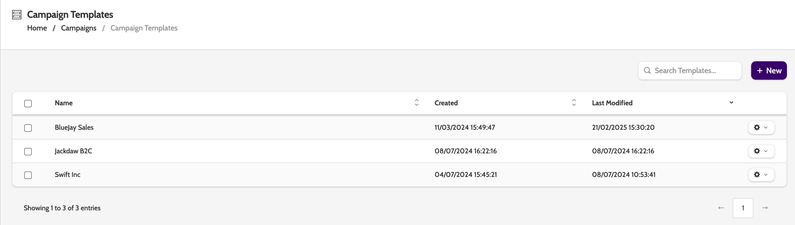 To edit an existing campaign template, click the cog icon to the right of the template, and select Edit