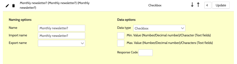 To adjust the placement of the data fields in your campaign template, use the arrows or enter a number in the box to dictate at what point in the list the data field will show.