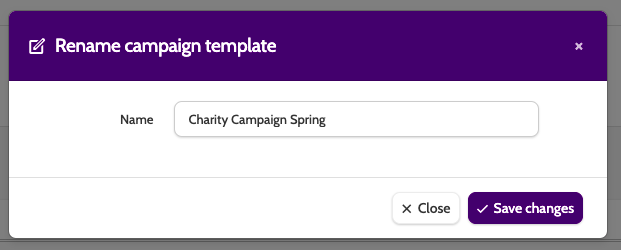 Locate the campaign template you wish to edit, click the cog icon to the right, and click Rename.