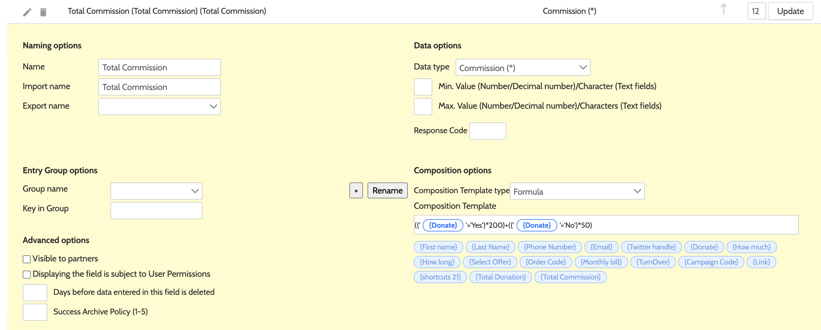 For example, in the image below, the Total Commission for an agent is calculated based on the lead's answer to 'Donate?'