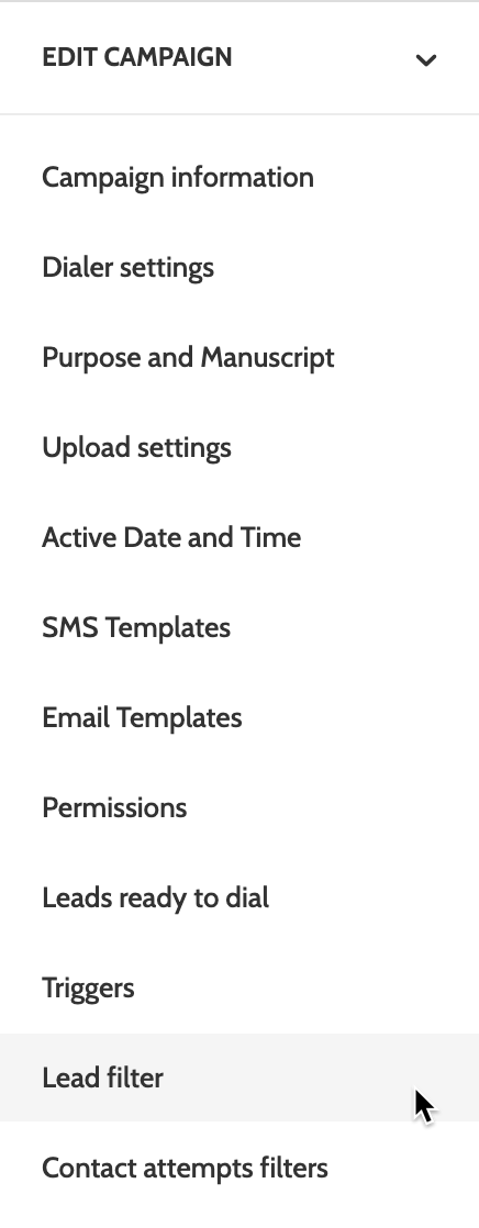 Alternatively, lead filters can be applied by Administrators to certain users in the Edit Campaign page.