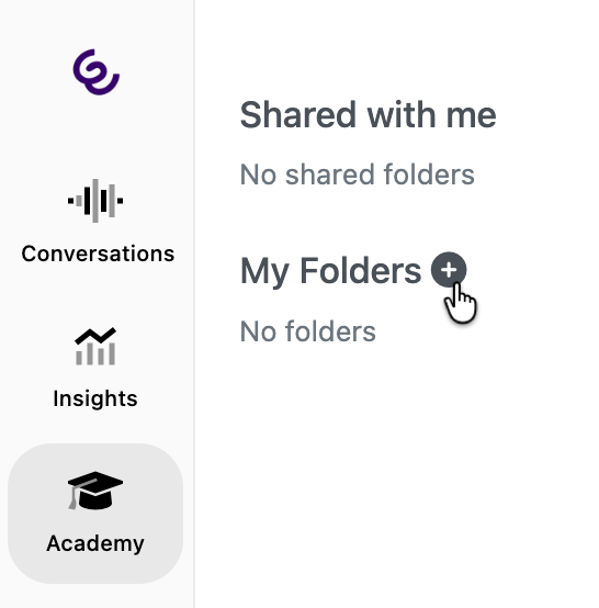 1. First, create a folder to store the snippets. Click on Academy, then create a folder by clicking the plus icon, entering the folder name in the pop-up, and clicking Save.