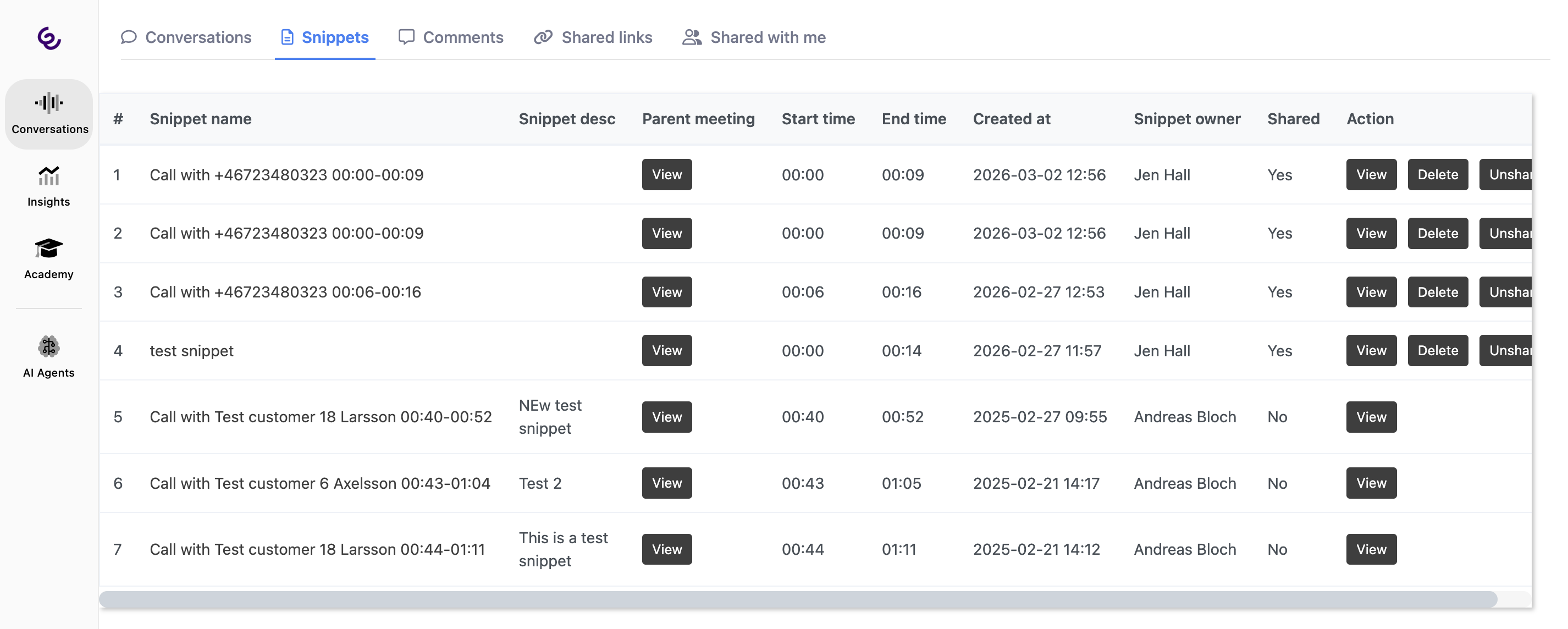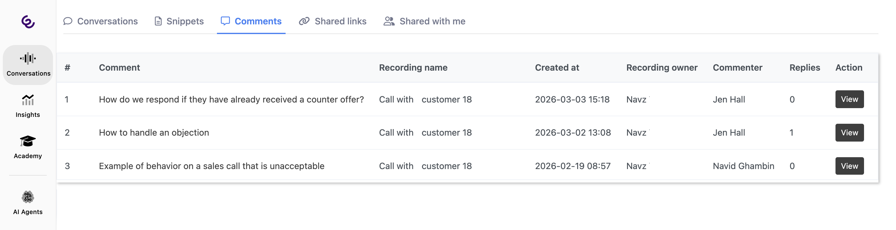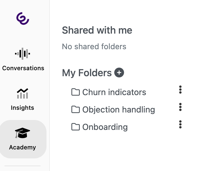 • Lists conversations that other people have shared with you, either directly (e.g. a manager sharing a specific call) or via a shared link that grants you access.