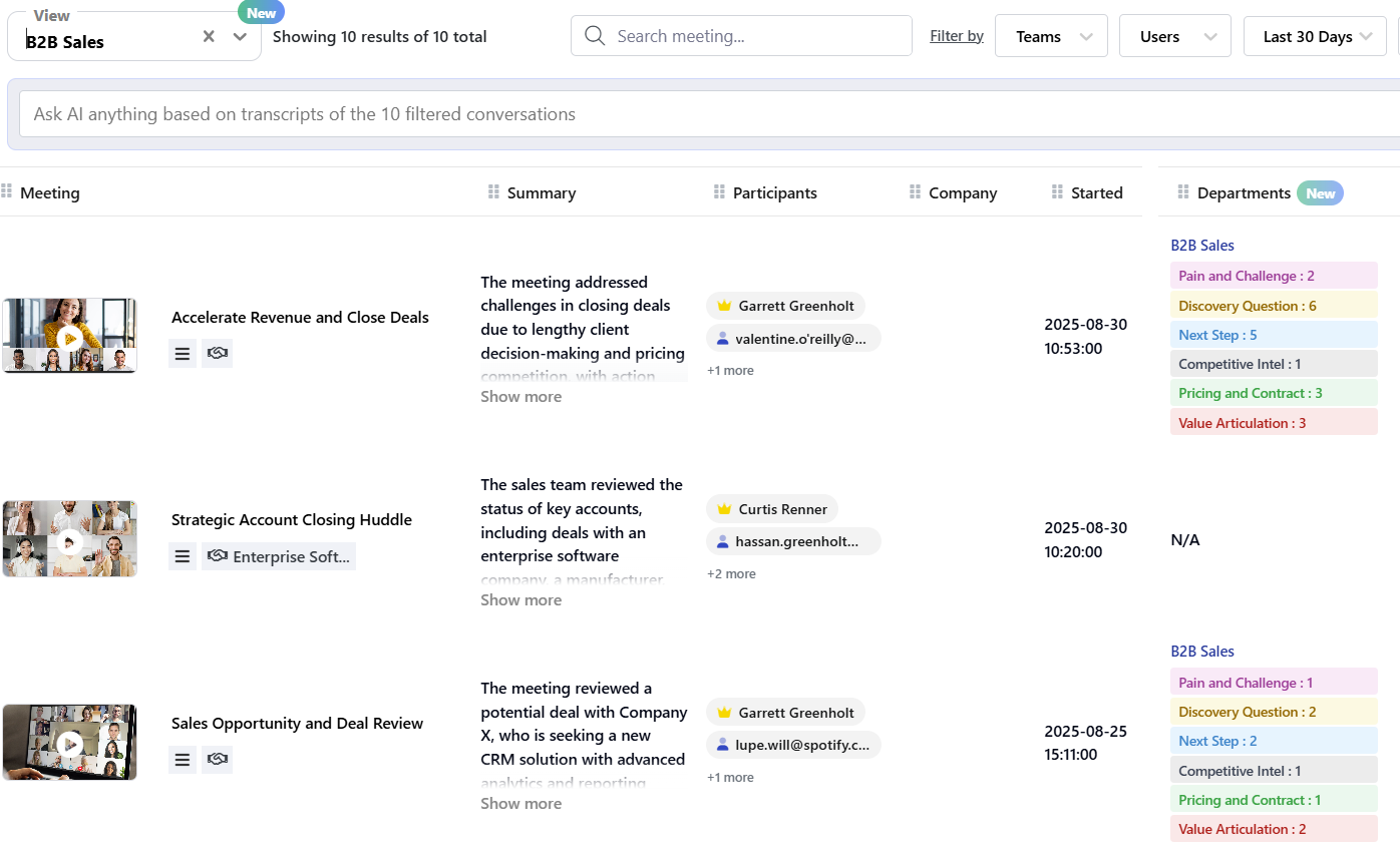 • Use search and timestamps instead of rewatching full meetings, making follow‑ups and preparation for next calls much faster.