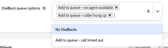 Selecting one, all, or a combination of the other options will add those call types to the DialBack queue.