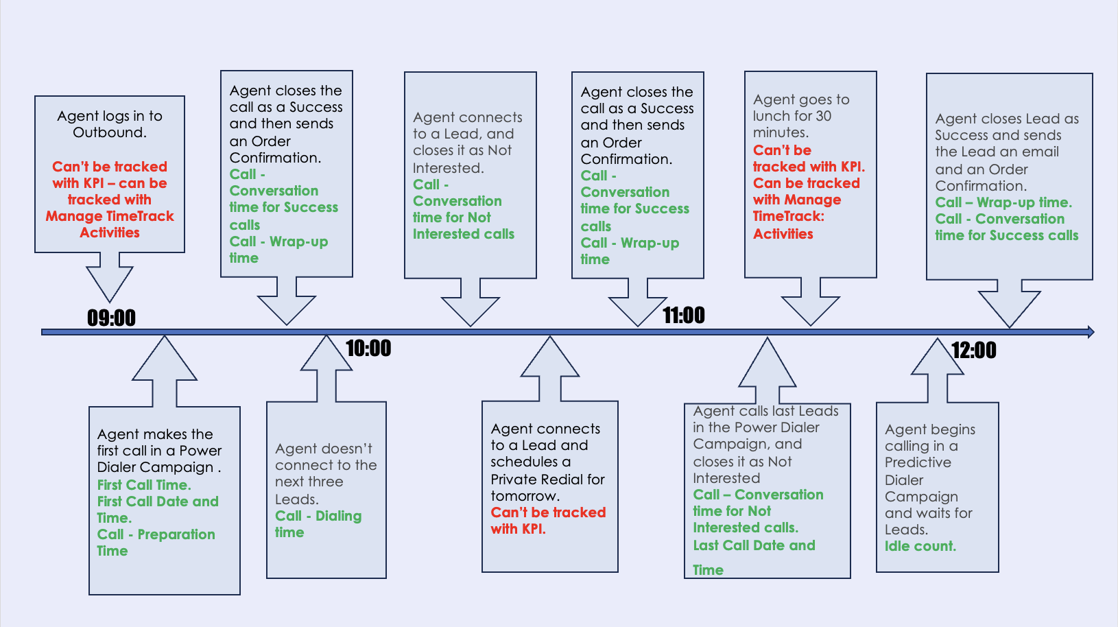 Tracking activities in the contact page through Report KPIs.How logged-in time is categorised in Outbound.