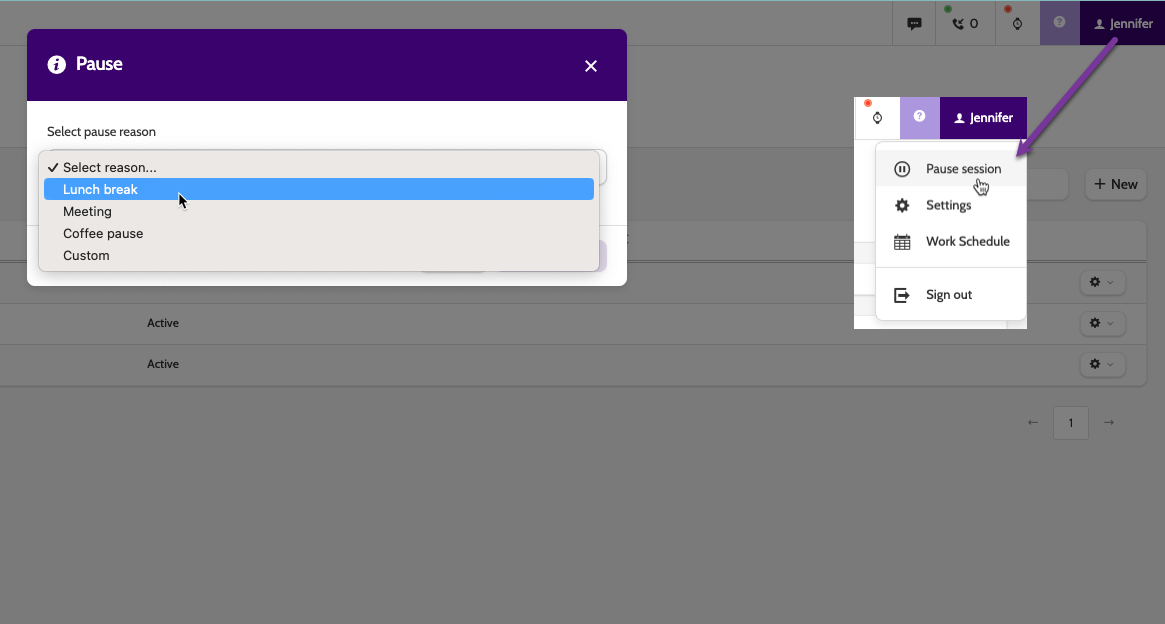 Manage Work Schedule: if you have this add-on module, you can create activities, or custom events or pauses, such as login time or lunch time, that can be scheduled, enforced, or voluntarily activated by the agent