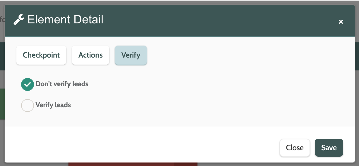 Toggle to Verify to check the leads that reach the Checkpoint element for the correct permissions to receive communication.