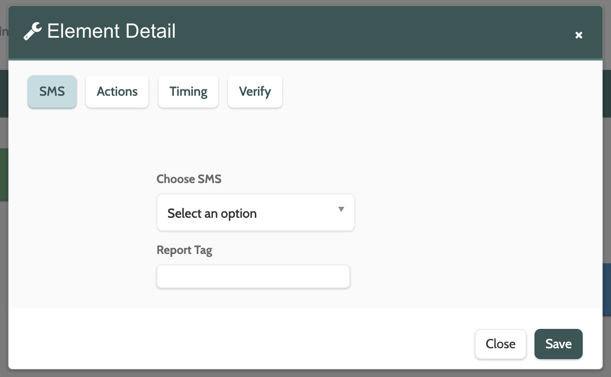 π Please note that you must have already created an SMS to use the SMS element.