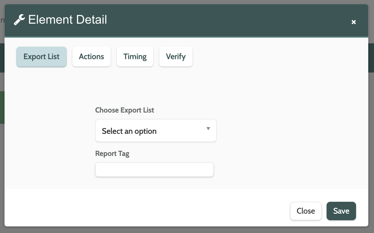 π Please note that you must have already created an export list to use the export list element.