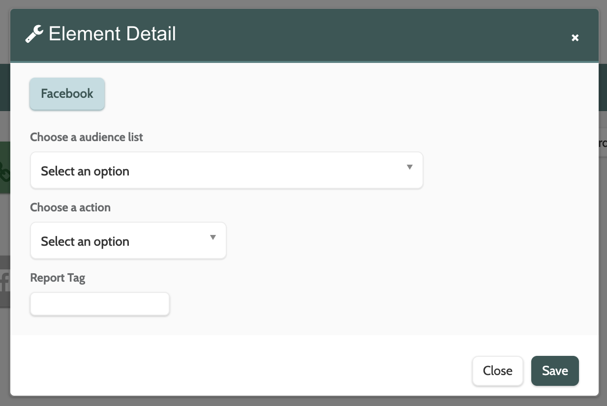 π Please note that you must have already created a Facebook Audience List to use the Facebook element.π