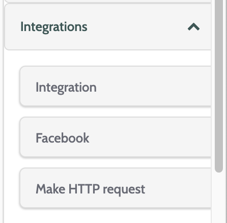 The Integrations elements will all you to integrate your automation flow to other systems.