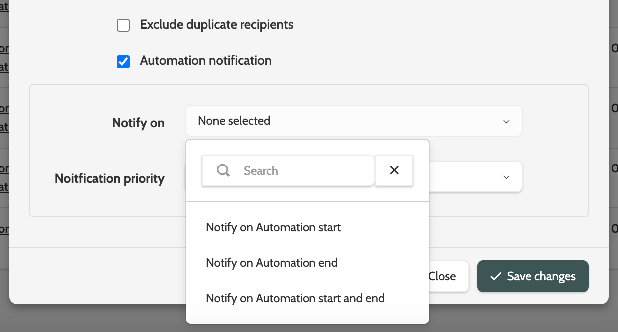 - Automation notification will allow you to schedule in-app notifications when the automation starts or ends.