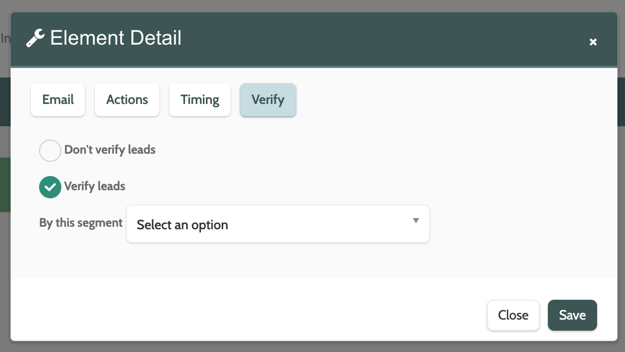 Expand the Segment menu and select a segment to verify the leads against.