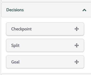 There are three Decisions elements: Checkpoint, Split, and Goal.
