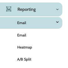 Under Email there are three options for viewing reports: Email, Heatmap, and A/B Split. Click on the desired heading to view the reports.