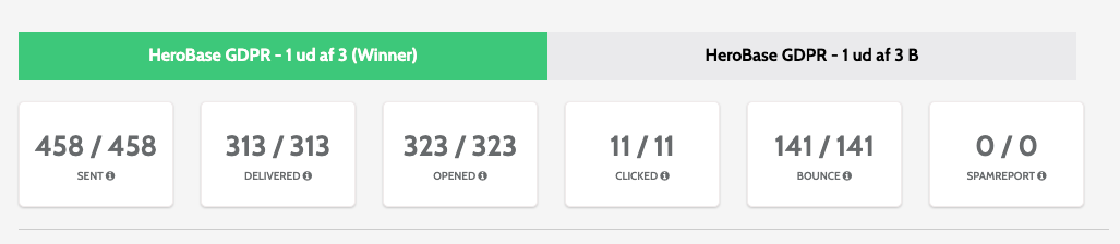 Click on an email to be taken to a heatmap of your A/B split, and compare the winning email's statistics compared to the losing email.
