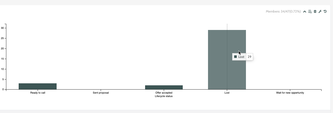 Hover your mouse over the bar chart to see how many leads are in each stage of the lifecycle.