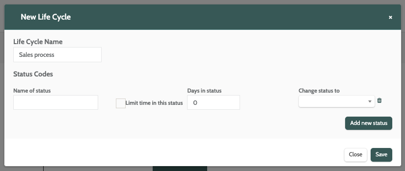 Please note! In order to create a new lifecycle, you must first create and save the Status Codes.