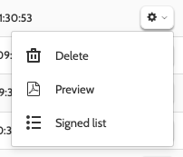 Choose between Delete, Preview, and Signed list.