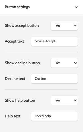 - Show accept button: choose whether to include an optional Accept button