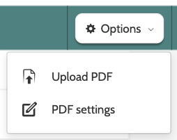 Click Options to choose between Upload PDF and PDF settings.