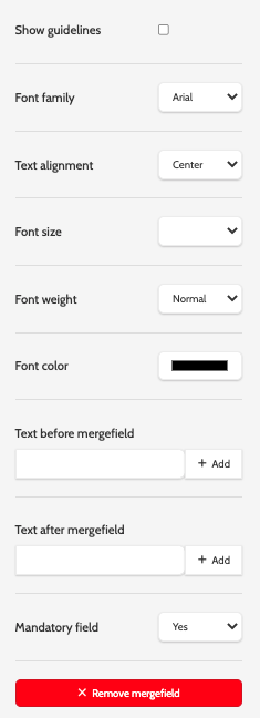 - Font family: select a font for the mergefields.