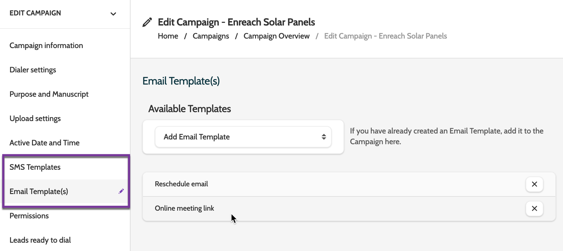 To use the templates, remember to add them to the campaigns you're working with, in Edit Campaign.