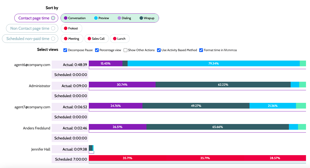 • Contact page time is divided between agent activities on the contact page