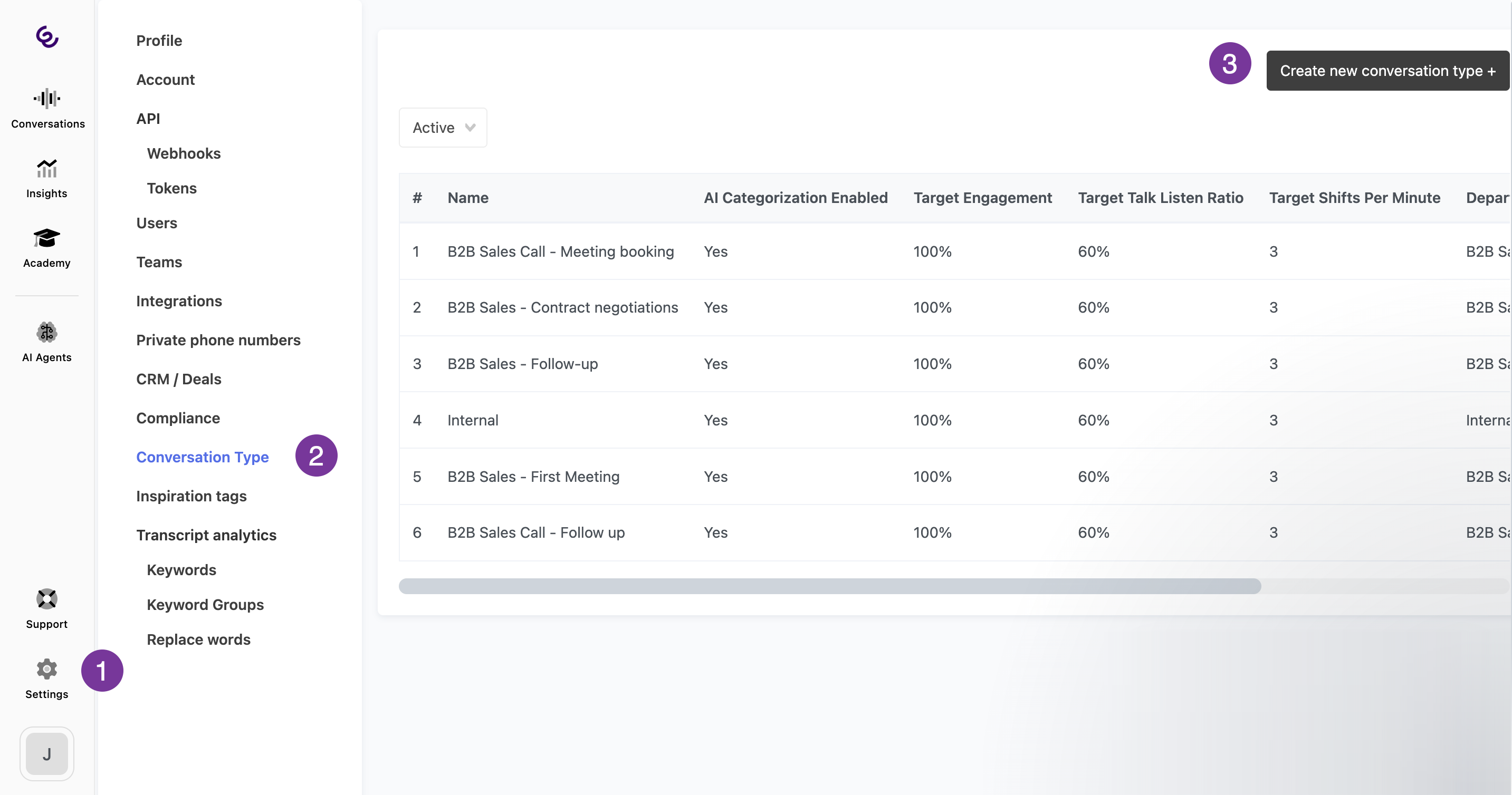 To create a Conversation Type, navigate to Settings > Conversation Type > Create new conversation type.