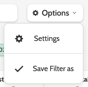 Expand the Options menu and choose between Settings and Save Filter as.