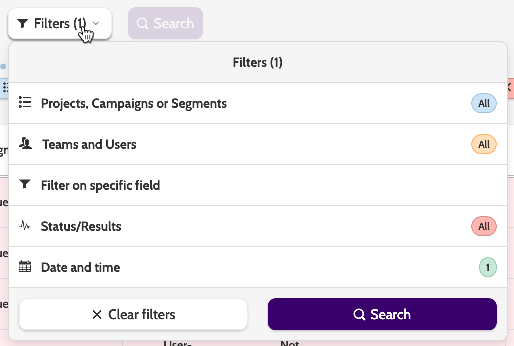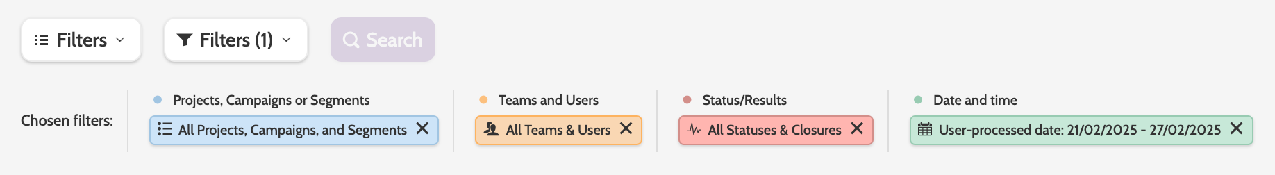 Click Search to apply the filters.