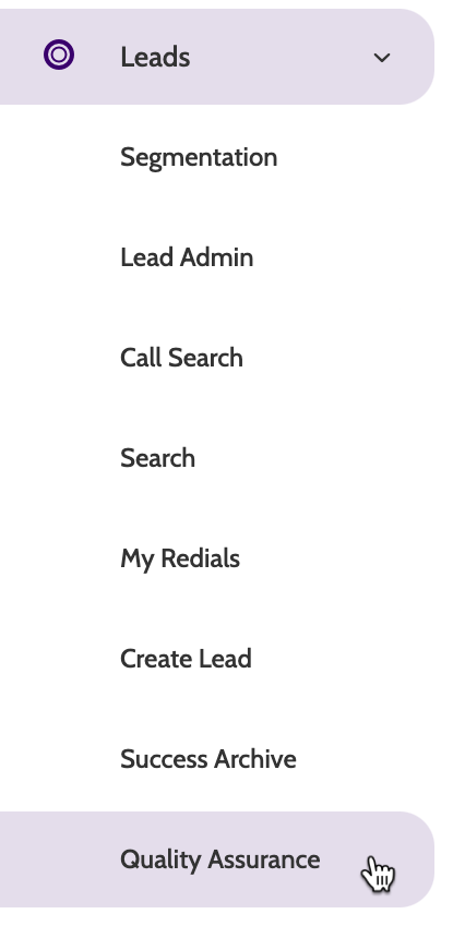 Quality Assurance can be found under the Leads menu.